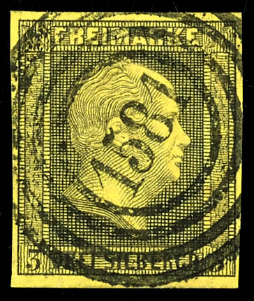 \1627\ - Wichlinghausen (administrativ district of Duesseldorf), clear on 3 silver penny black on yellow, very fine (4a) \1627\ - Wichlinghausen (Reg.-Bez. Düsseldorf), klar auf 3 Silbergroschen schwarz auf gelb, tadellose