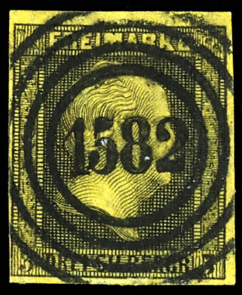 \1614\ - Wernigerode (administrativ district of Magdeburg), clear on 3 silver penny black on yellow, very fine (4a) \1614\ - Wernigerode (Reg.-Bez. Magdeburg), klar auf 3 Silbergroschen schwarz auf gelb, tadellose Erhaltung