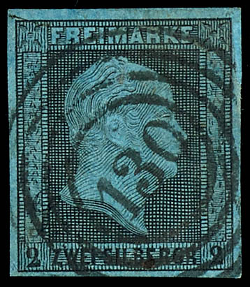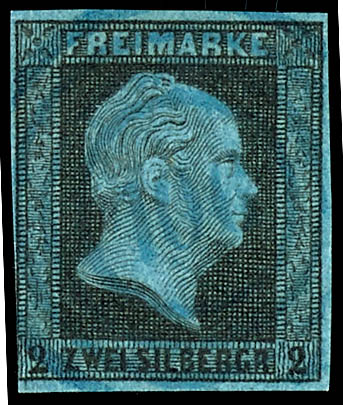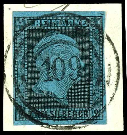 auf 2 Silbergroschen schwarz auf blau, tadellose Erhaltung