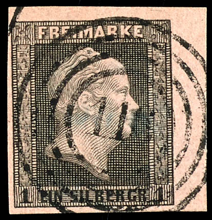 142 - Bleicherode (Administrative District of Erfurt), clear and centrally struck on a 1 silver groschen black on pink, flawless condition. (2a) \142\ - Bleicherode (Reg.-Bez. Erfurt), klar und zentrisch auf 1