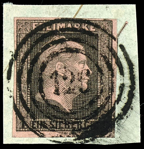zentrisch auf 1 Silbergroschen schwarz auf rosa auf Briefstück, tadellose Erhaltung