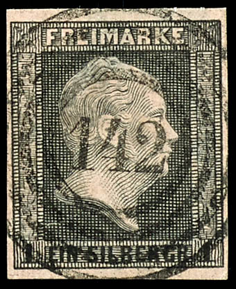 112 - Bernstadt (Administrative District of Breslau), clearly struck on a mint never hinged 1 silver groschen black on pink, excellent condition. (2a) \112\ - Bernstadt (Reg.-Bez. Breslau), klar auf vollrandiger 1