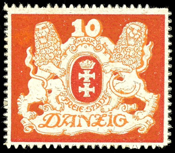 40 Thousand Mark on 200 Mark Wappen, correctly postmarked \DANZIG * 1 c 3. 9. 23 3-4 N\, flawless condition, genuine used example, not common, photographic finding by Rolf Tworek BPP (2007) \Postmark genuine, flawless\, Michel