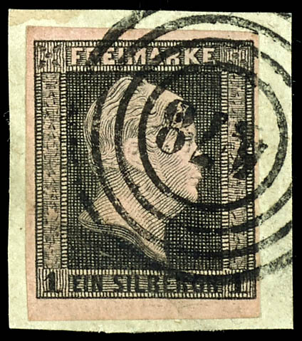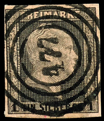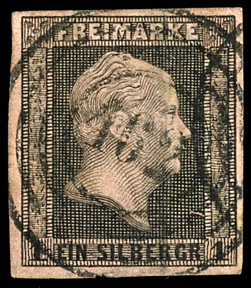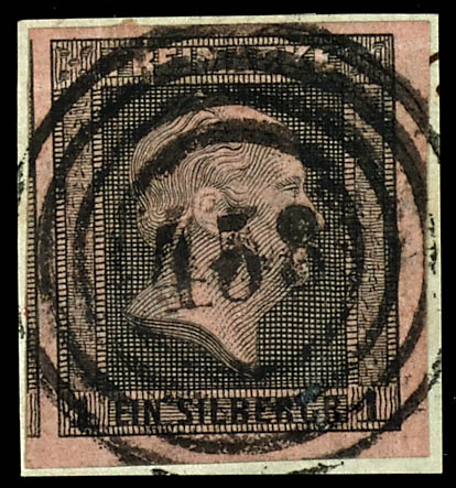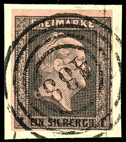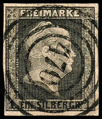 zentrisch auf 1 Silbergroschen schwarz auf rosa, tadellose Erhaltung, seltener Stempel, geprüft Grobe