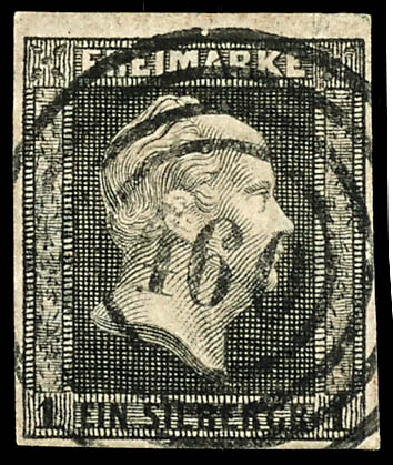 469 - Gebesee (Administrative District of Erfurt), clear and centrally struck on a 1 silver groschen black on pink, flawless condition. (2a) \469\ - Gebesee (Reg.-Bez. Erfurt), klar und zentrisch auf 1 Silbergroschen