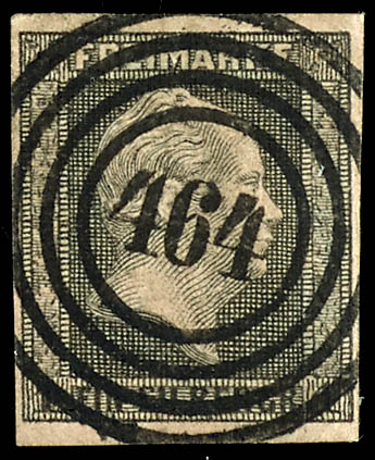 464 - Garz (Administrative District of Stettin), clear and centrally struck on a 1 silver groschen black on pink, flawless condition. (2a) \464\ - Garz (Reg.-Bez. Stettin), klar und zentrisch auf 1 Silbergroschen schwarz