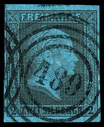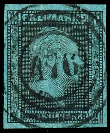 476 - Genthin (Administrative District of Magdeburg), clear and centrally struck on a 2 silver groschen stamp, black on blue, excellent condition. (3) \476\ - Genthin (Reg.-Bez. Magdeburg), klar und zentrisch auf 2