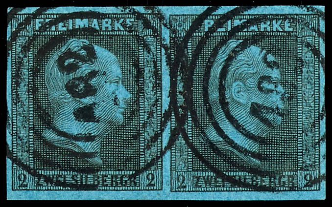 zweimal klar und zentrisch auf waagerechtem Paar 2 Silbergroschen schwarz auf blau, tadellose Erhaltung