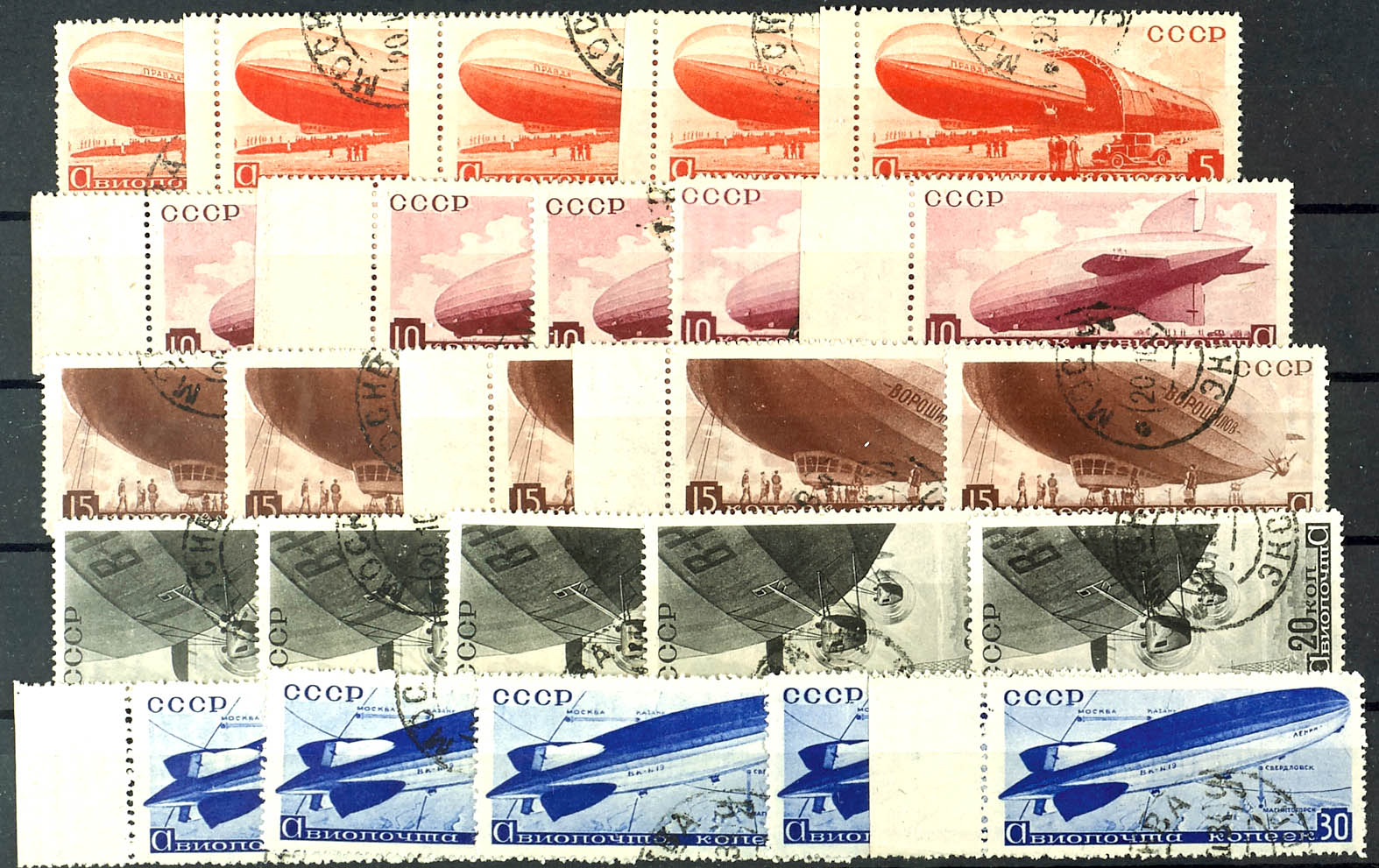 5 c - 30 c Airships, 5 complete used sets, Michel 500,- (483/87) 5 K. - 30 K. Luftschiffe, 5 komplette gestempelte Sätze, Mi. 500,-