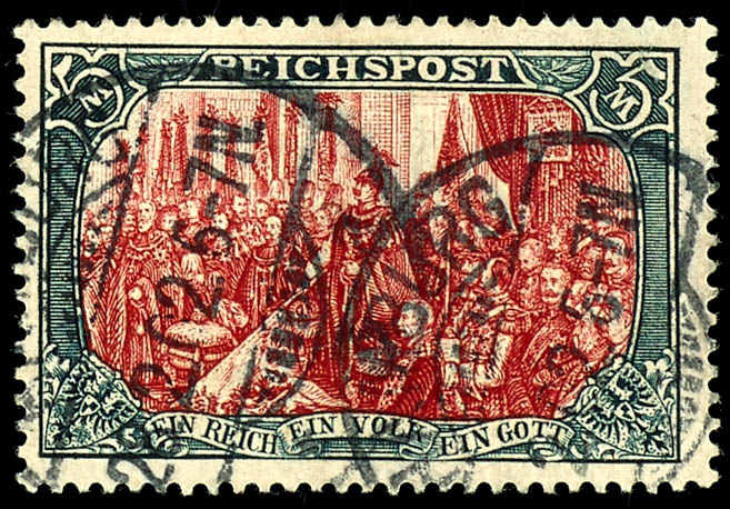 5 Mark Reichspost, Type II, used, postmark \HAMBURG 28. 2. 12 5-7 N\, excellent condition. (66II) 5 Mark Reichspost, Type II, entwertet \HAMBURG 28.2.12 5-7N\, tadellose Erhaltung