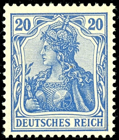 20 Pfennig Germania, lilac ultramarine, mint with original gum, flawless condition, unsigned, photo certificate Michael Jaeschke-Lantelme BPP \in error-free, mint condition.\, Michel 600.- (72b) Certificate 20 Pfennig Germania, lilaultramarin, ungebraucht mit Originalgummierung, tadellose Erhaltung, unsigniert, Fotoattest Michael