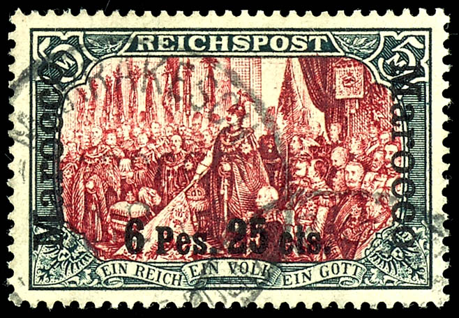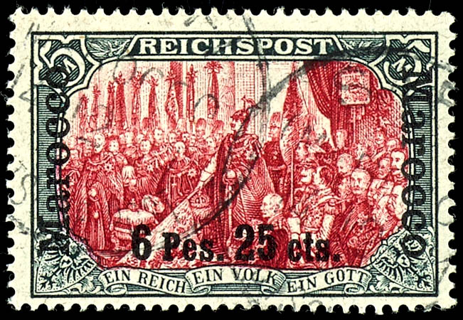 5 Mark with overprint \6 Pes. 25 Cts.\, used, fine, Michel 550.- (19II) 5 Mark mit Aufdruck \6 Pes. 25 Cts.\, gestempelt, einwandfrei, Mi. 550.-