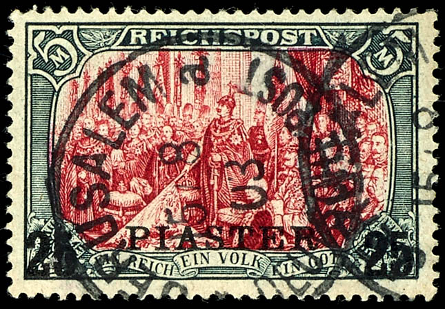 50 Pfennig Crown / Eagle with overprint \2 1/2 PIASTER\, used, fine, Michel 150.- (10ba) 50 Pfennig Krone/Adler mit Aufdruck \ 2 1/2 PIASTER, gestempelt, einwandfrei,, Mi. 150.-