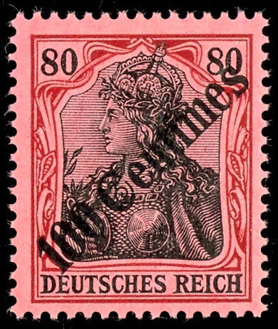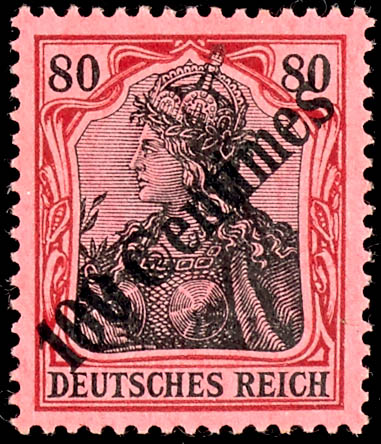 80 Pfennig Germania with an oblique overprint \100 Centimes\, mint never hinged, unsigned, flawless, Michel 180.- (52) 80 Pfennig Germania mit schrägem Aufdruck \100 Centimes\, postfrisch, ohne Signatur, tadellos, Mi.