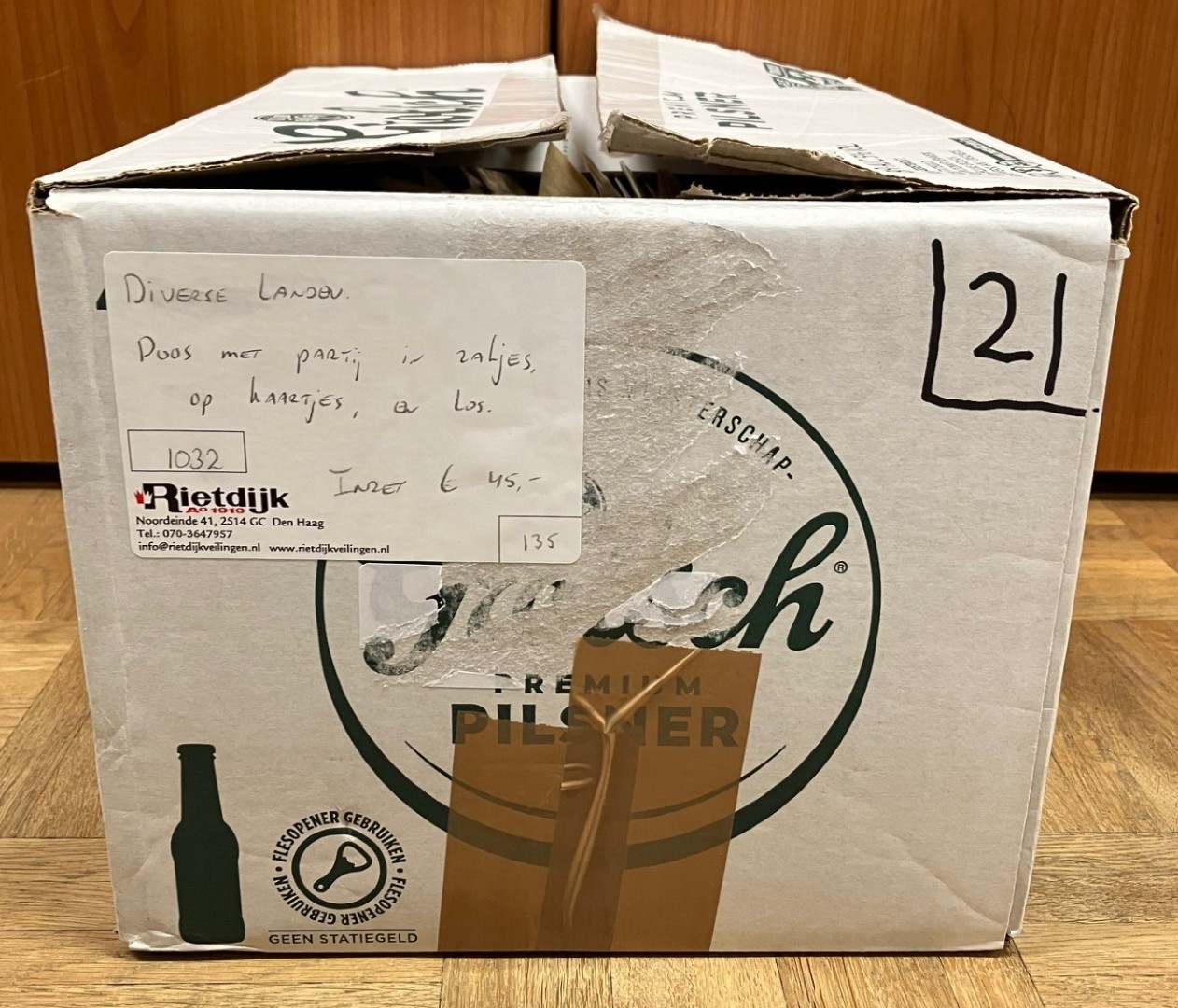 LANDEN. Doos met partij in zakjes, op kaartjes en los. Click this link for additional images and certificates. (Image)