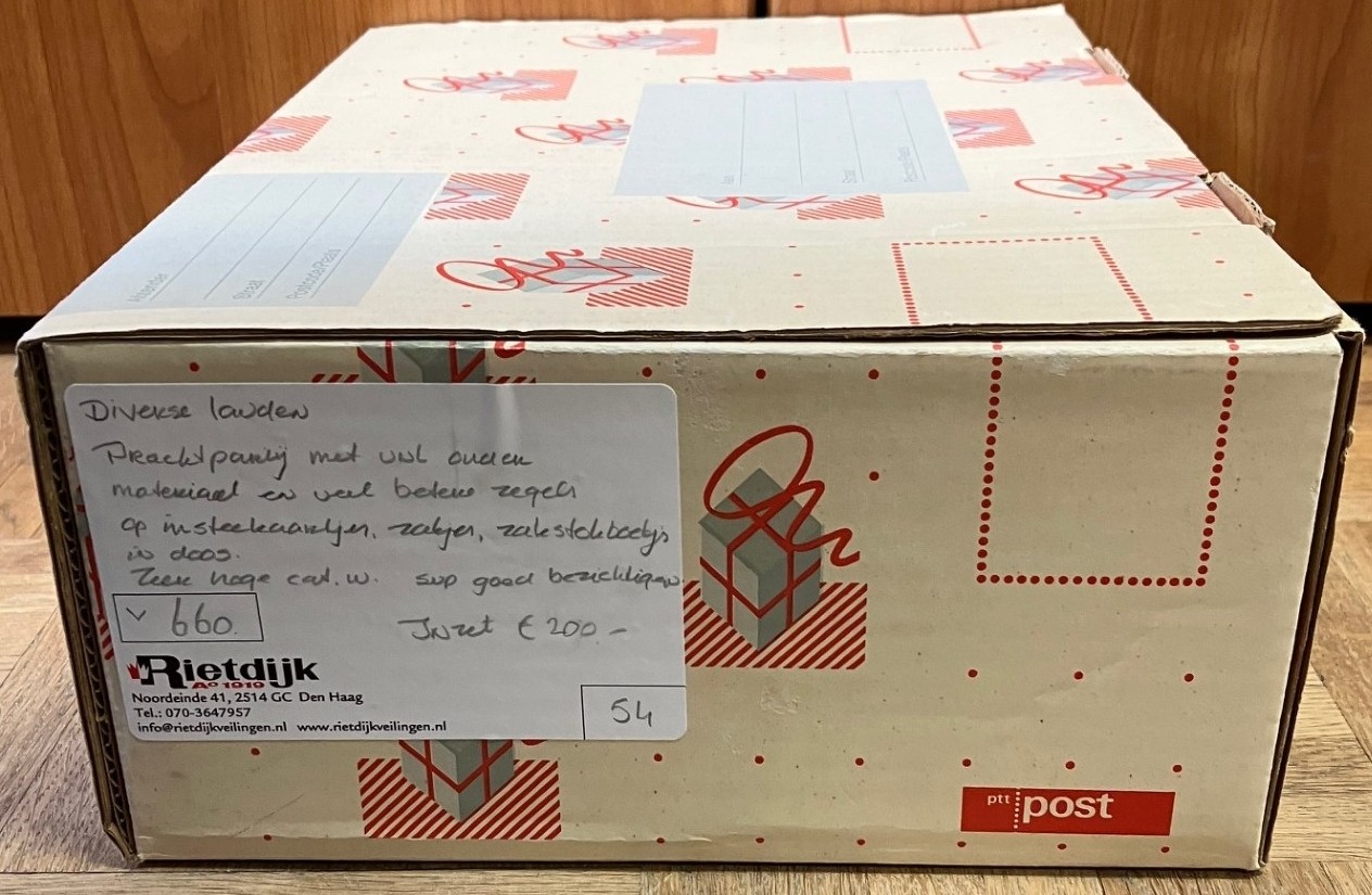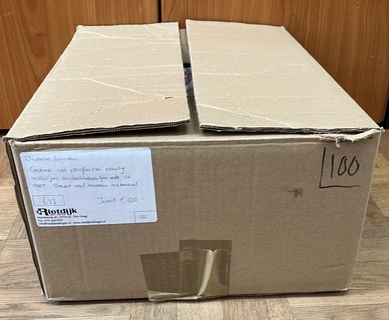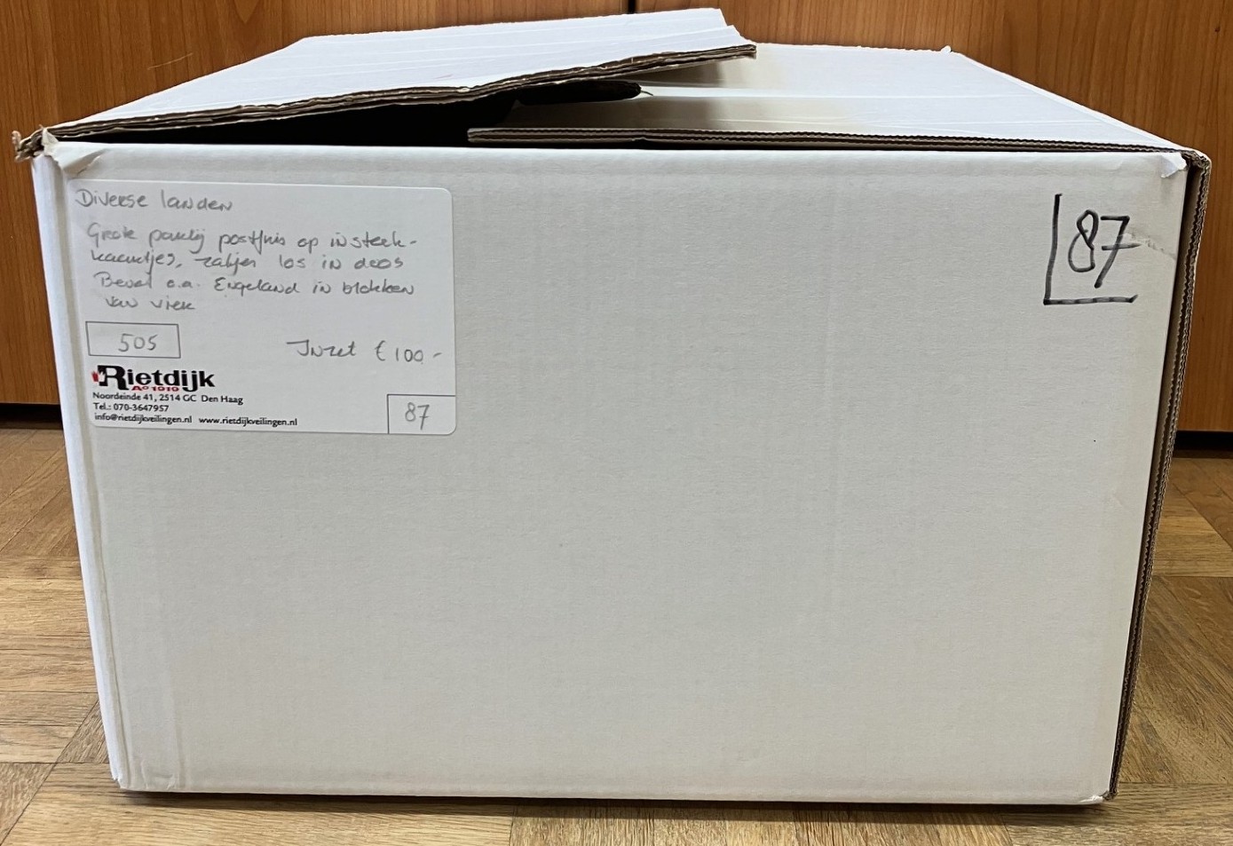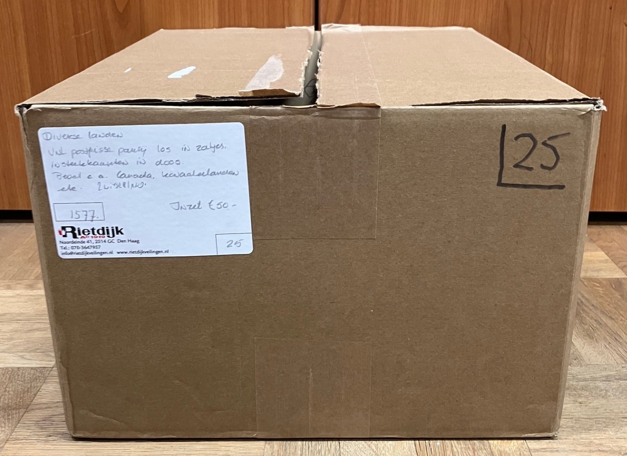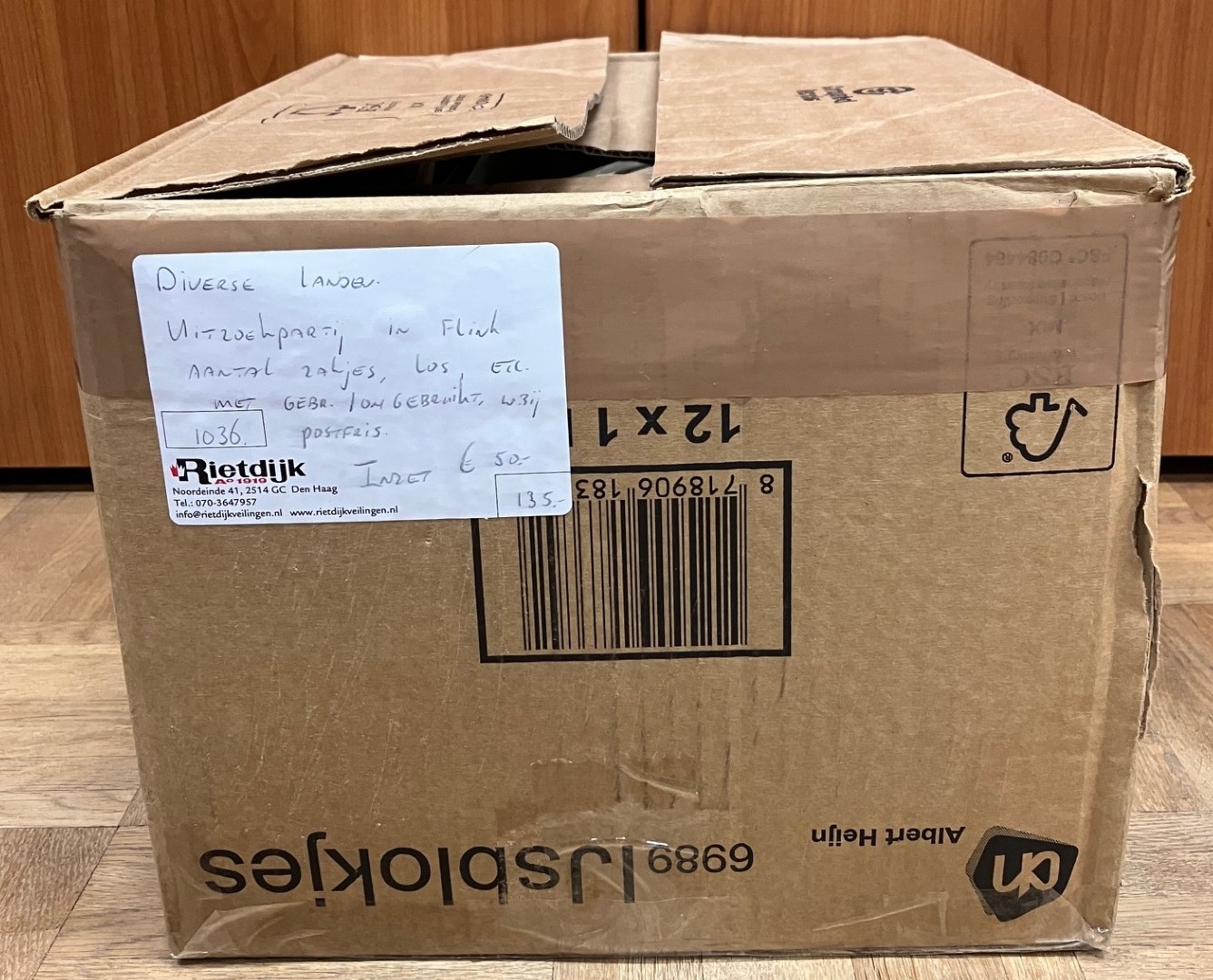 LANDEN. Doos met partij, w.bij veel postfris doch ook wat gestempeld in zakjes en los. Bevat o.a. nominaal Frankrijk. Click this link for additional images and