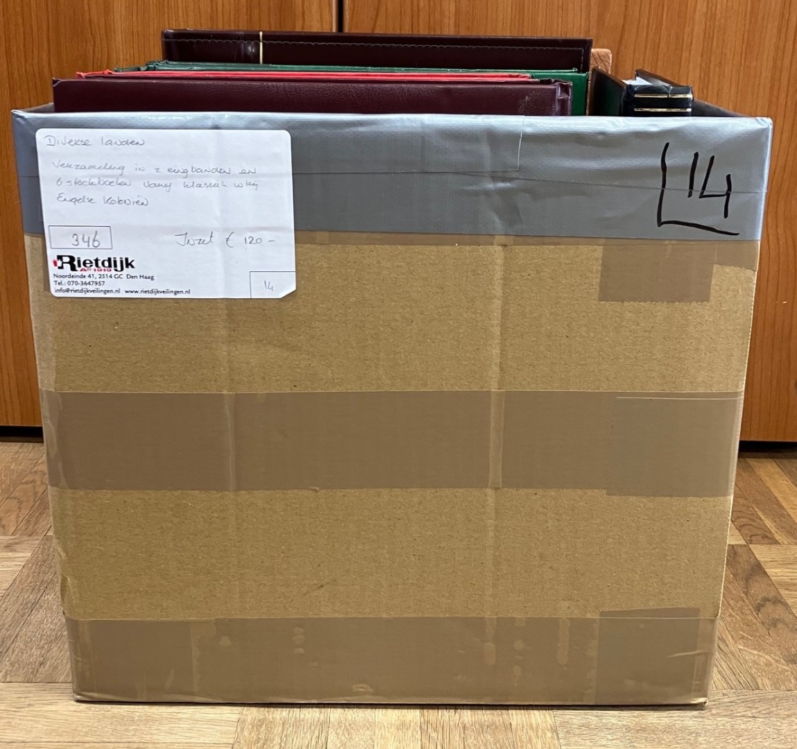 LANDEN. Twee verhuisdozen met (restant)collecties en partijen vnl. Europese landen in 14 albums en 5 stockboeken. Click this link for additional images and