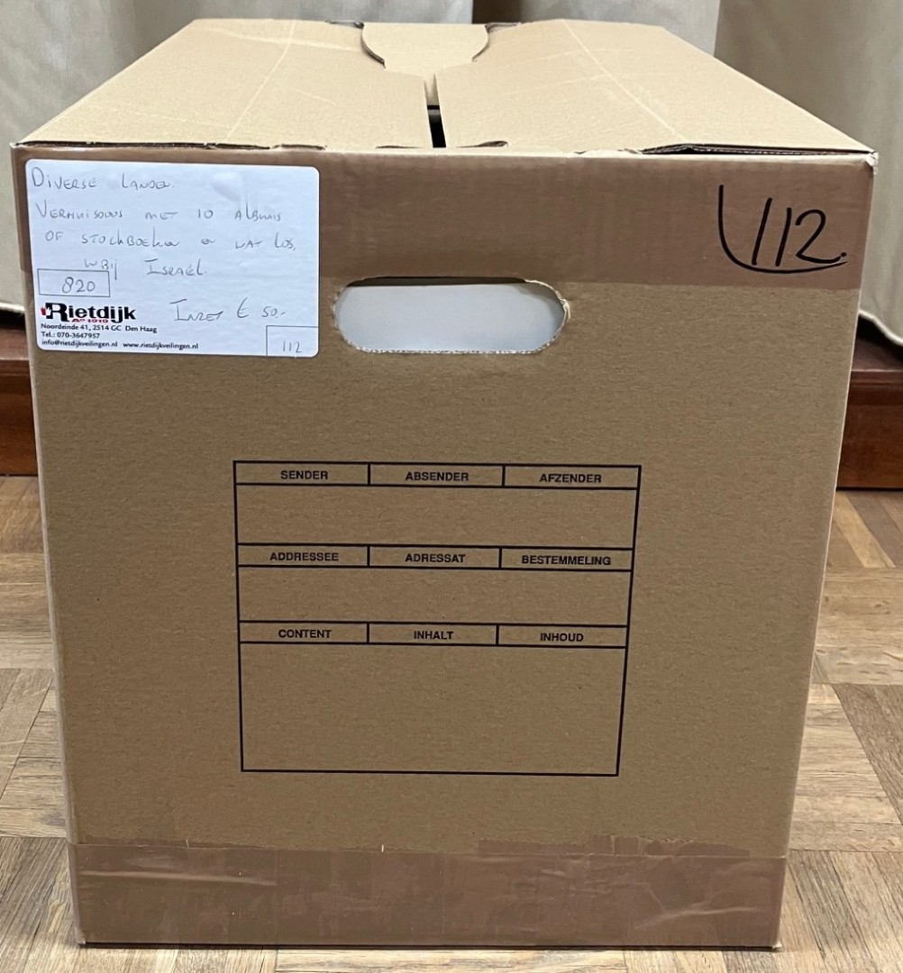 LANDEN. Verhuisdoos met 10 albums of stockboeken en wat los, w.bij Israël. Click this link for additional images and certificates. (Image)