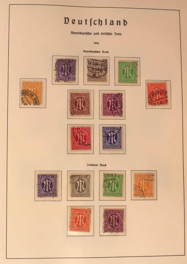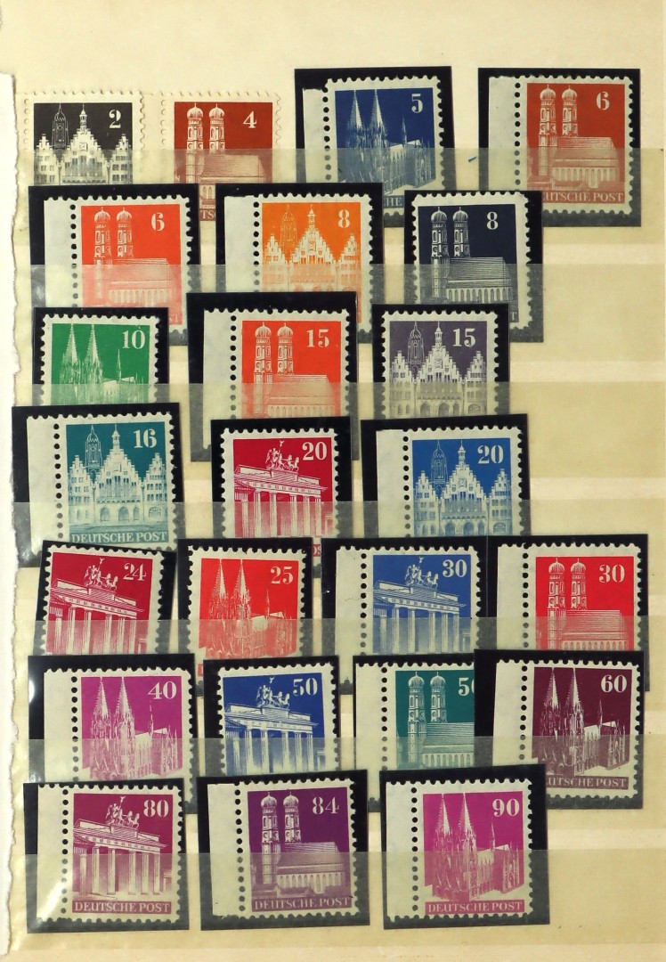 (AMERIKAANSE EN BRITSE ZÔNE) [1948]. Vnl. postfrisse verz. opdrukken met variaties o.a. kopstaand, spiegeldrukken op gomzijde, etc. Click this link for additional images