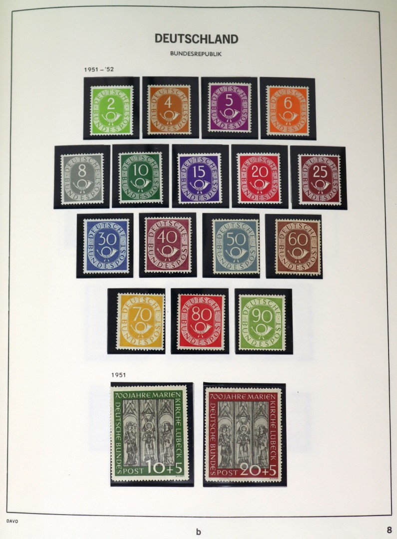 (B.R.D.) [1949-2022]. ONGEBRUIKTE COLLECTIE MET GOED BEGINPERIODE INCL. POSTHOORNSERIE EN LATER OVERGAAND IN POSTFRIS IN 5 LUXE DAVO ALBUMS. MOOIE KOOP MET HOGE NOMINALE WAARDE! Click this link for additional images and certificates. (Image)