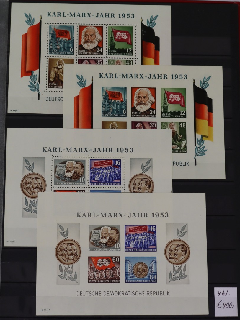 (1937-1954]. Ongebruikte en veelal postfrisse samenstelling blocks met o.a. Reich, Geallieerde Zônes en D.D.R., w.bij deels dubbel en ook beter genoteerde ex. in stockboek. Flinke cat. waarde! Click this link for additional images and certificates. (Image)