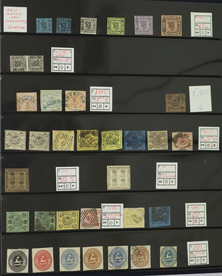 (OUDE STATEN). COLLECTIE MET VEEL GEBRUIKT DOCH OOK DEELS ONGEBRUIKT INCL. WAT DOUBLETTEN OP INSTEEKBLADEN IN SAFE RINGBAND. TEVENS IETS KOLONIËN. Click this link for
