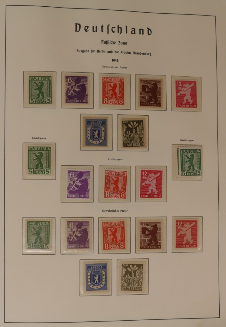 2166 imageDUITSLAND (RUSSISCHE ZÔNE) [1945-1949]. Verz. met prima materiaal in klemband ongebruikt, w.bij postfris incl. diverse blocks en extra's.