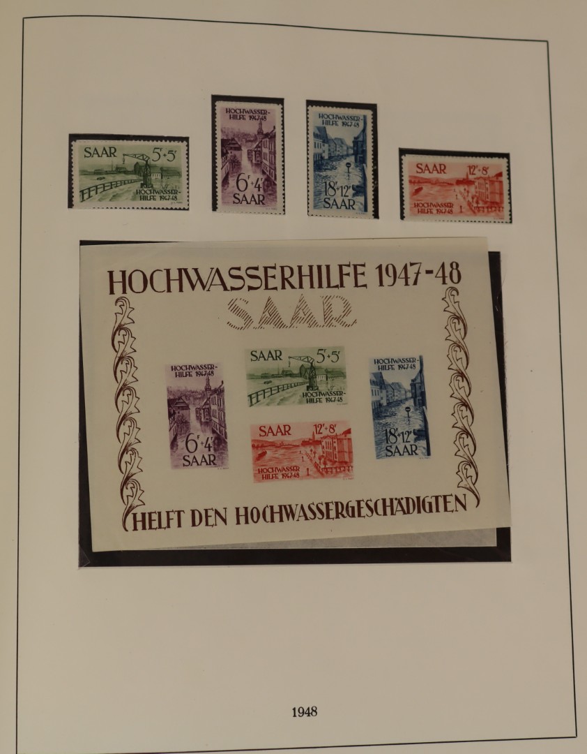 2167 imageDUITSLAND (SAAR) [1947-1956]. Vrijwel geheel postfrisse verz. in klemband. Bevat ook Hochwasserhilfeblocks, w.bij block 1 ongebruikt en beide vrijwel pracht ex.