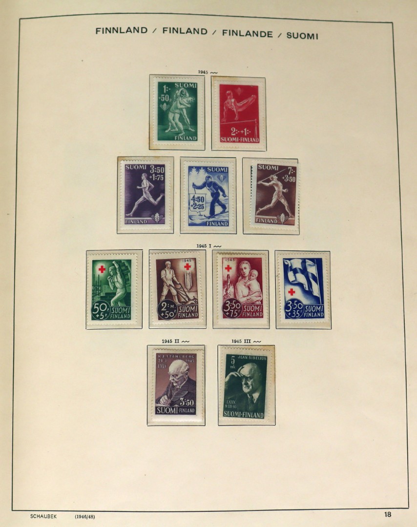 1009 imageFINLAND [1945-1982]. Vrijwel geheel postfrisse verz. in Schaubek album.