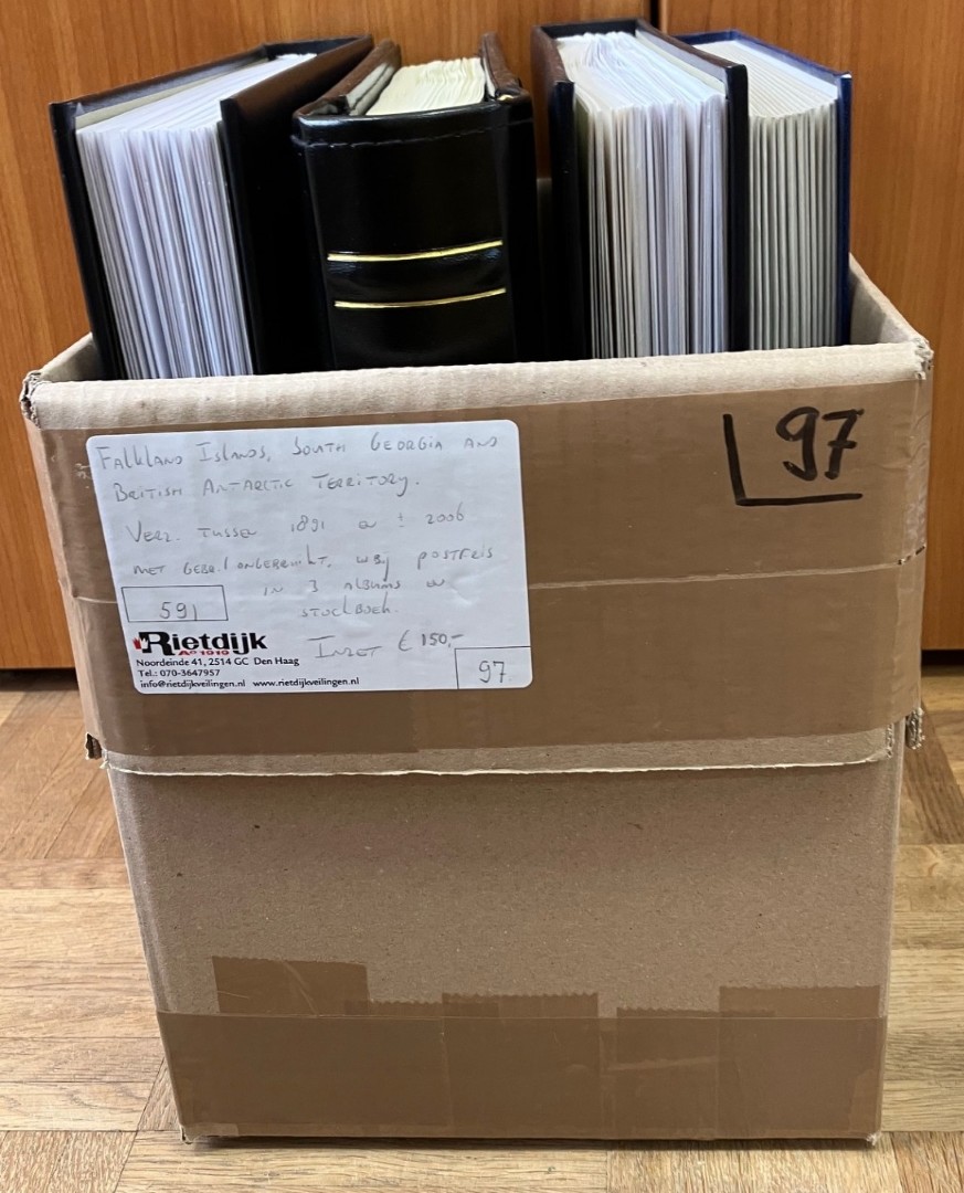 1136 imageFALKLAND ISLANDS, SOUTH GEORGIA AND BRITISH ANTARCTIC TERRITORY. Verz. tussen 1891 en ± 2006 met gebr./ongebruikt, w.bij postfris in 3 albums en stockboek.