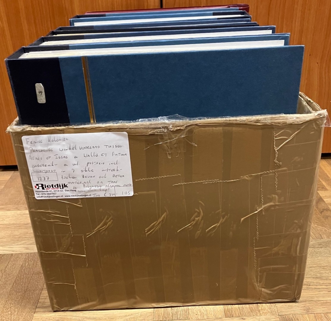 KOLONIËN. PRACHTIGE WINKELVOORRAAD TUSSEN AFARS ET ISSAS EN WALLIS ET FUTUNA GEHEEL ONGEBRUIKT EN VNL. POSTFRIS INCL. LUCHTPOST EN OPGEZET IN 7 DIKKE INSTEEKBOEKEN. BEVAT OOK BETER MATERIAAL O.A. T.A.A.F. EN POLYNESIË ALSMEDE VEEL MOTIEF. ZEER MOOIE