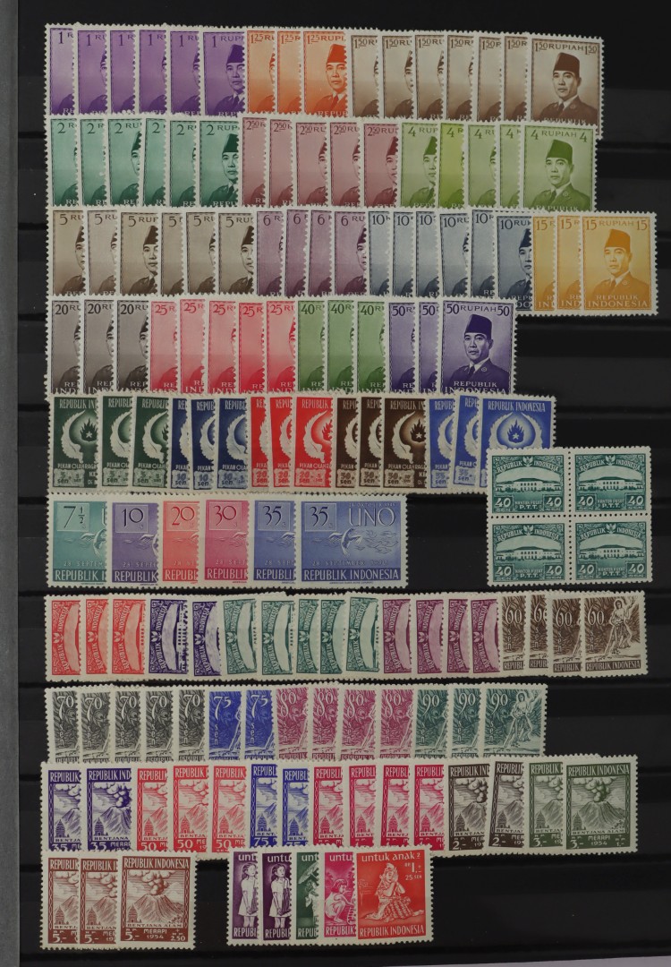 1047 imageINDONESIË [1949-1982]. Deels dubbele verz. zowel ongebruikt/postfris als gebruikt incl. extra's in 2 stockboeken.