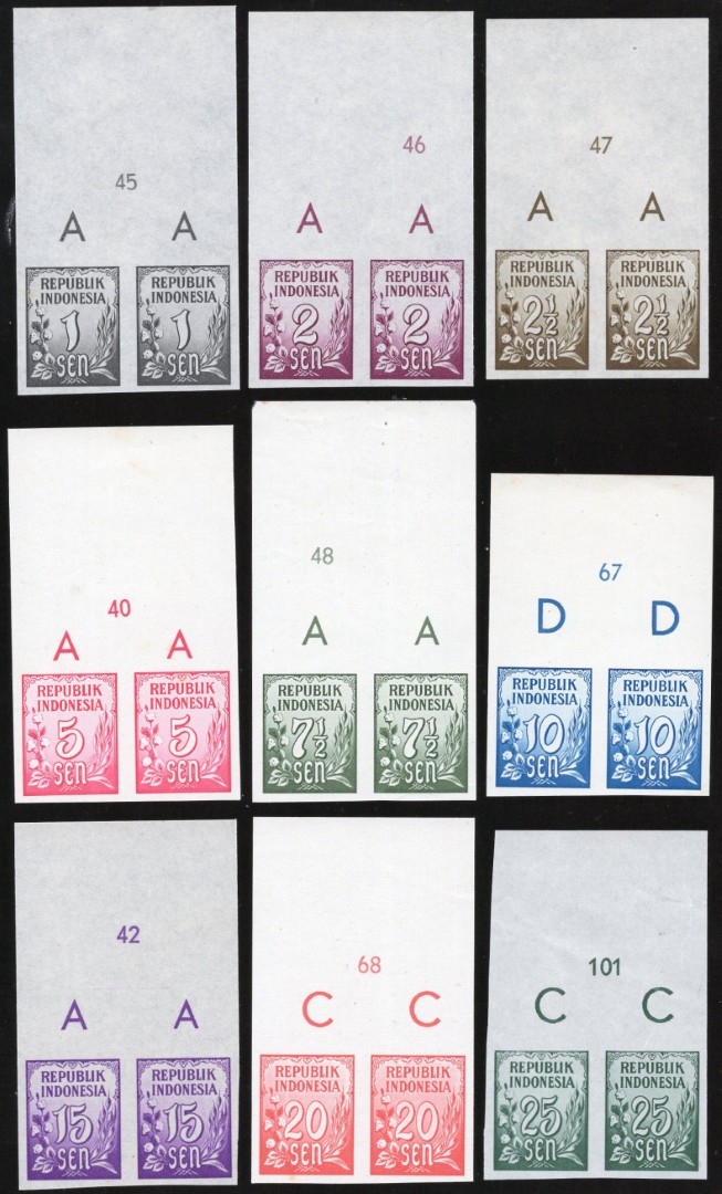 2587 imageZonnebloem nr. 72H-80H, ongetande proeven (zonder gom) in paren met bovenvelrand met plaatnummers en oplageletters. Cat. waarde € 3000,-.