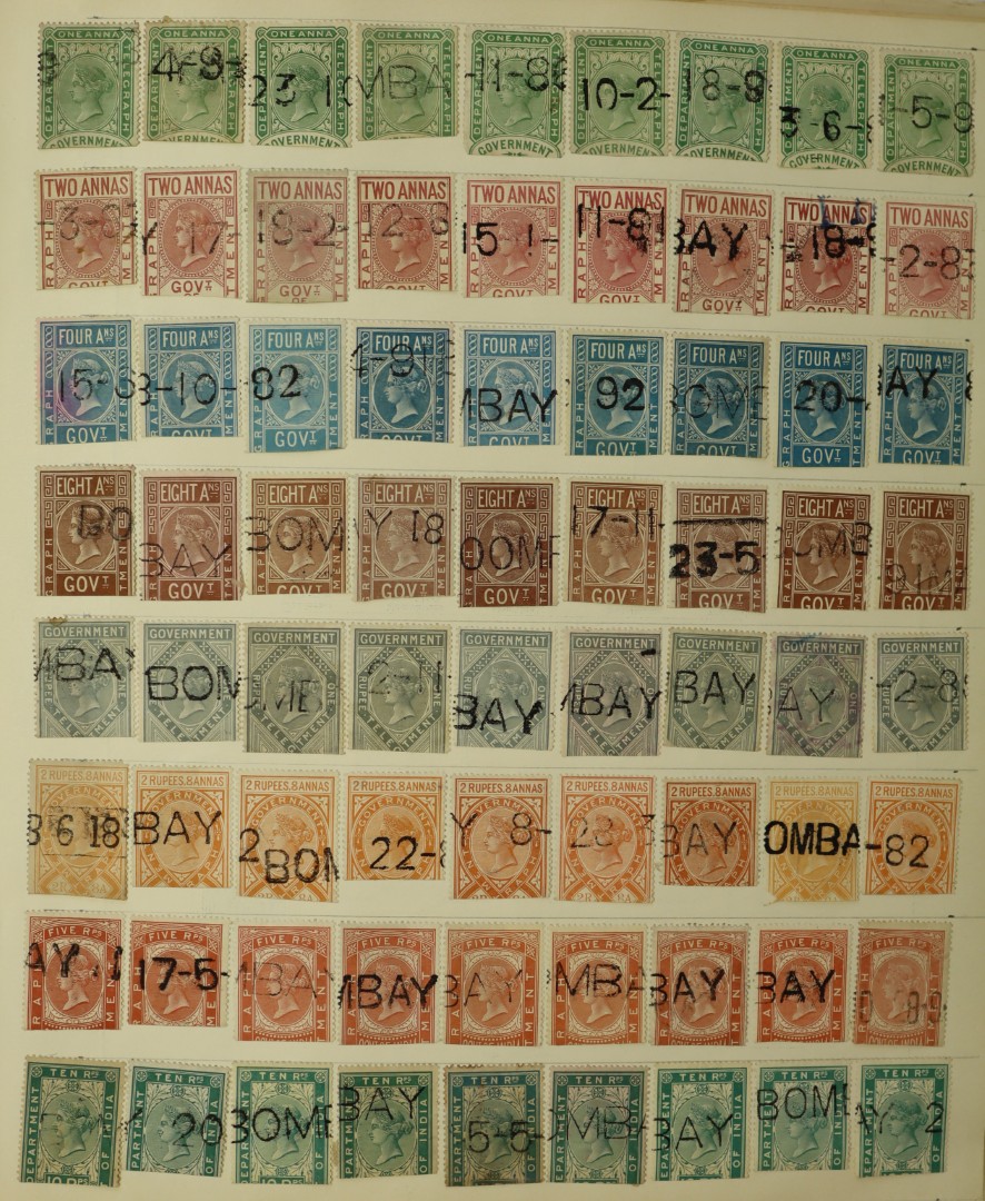 2232 imageINDIA. Interessante en vrijwel geheel gebruikte collectie vanaf 1854 incl. gebieden op bladen in album. Tevens iets diverse. Leuke koop!