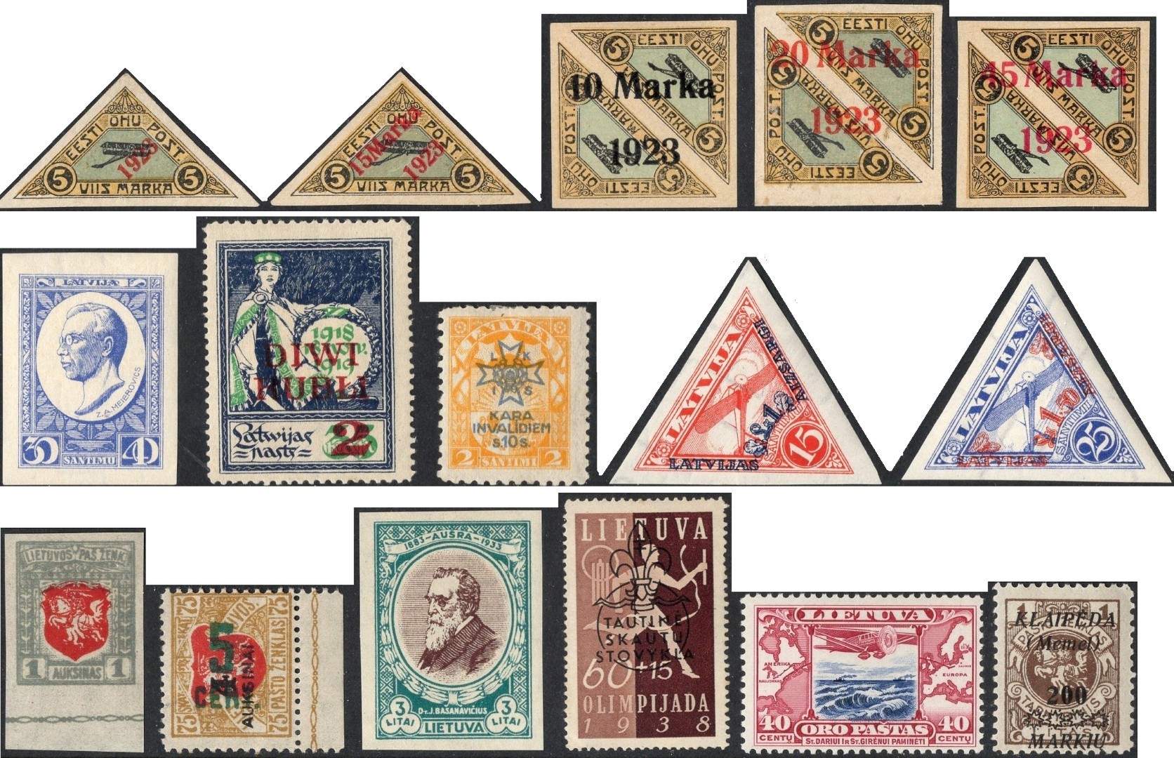 STATEN. Uitgebreide, postfrisse verz. vanaf 1990 met Estland t/m 2010 en Letland en Litouwen t/m 2009 op blanco bladen incl. velletjes, blocks en postzegelboekjes in 3 albums. Tevens blanco album met zegels diverse landen gerelateerd aan de Baltische