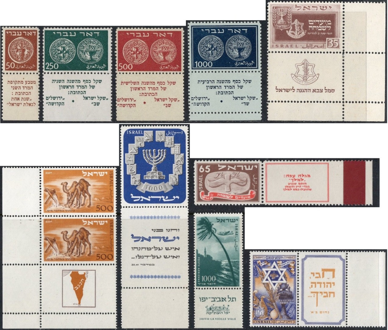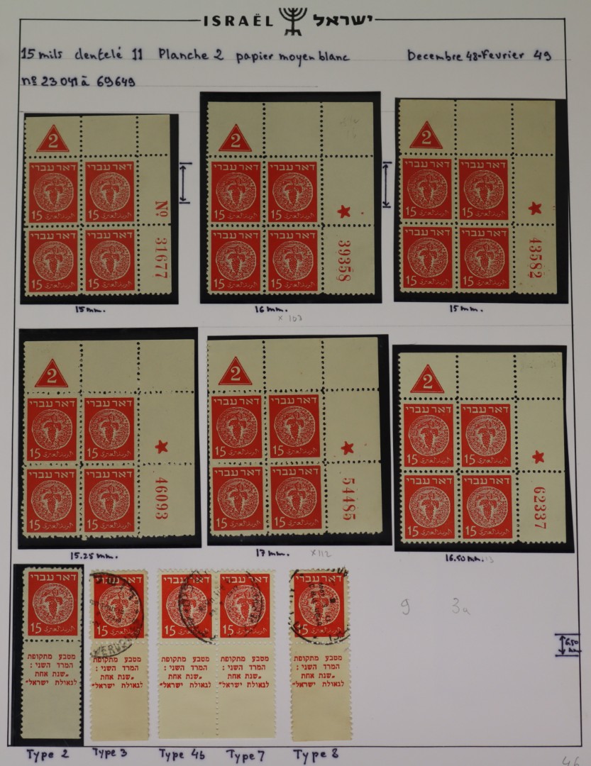 2315 imageISRAËL [1948]. Gespecialiseerde collectie nr. 1 t/m 6 met o.a. plaatnummers, tabtypen en tandingen met wat gebruikt en veel ongebruikt/postfris.