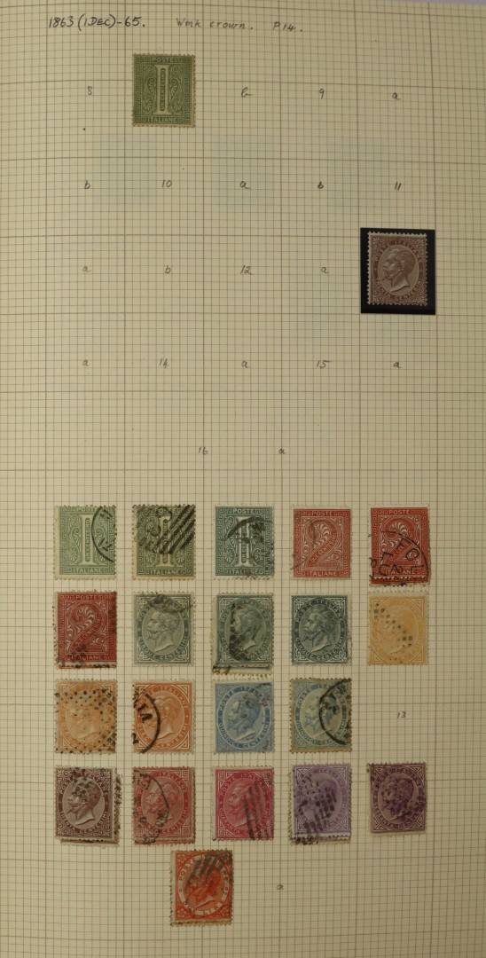 2318 imageITALIË [1862-1980]. Verz. op blanco bladen met gebr./ongebruikt in dik album. Tevens wat gebieden en dergelijke in schrift. (Image)