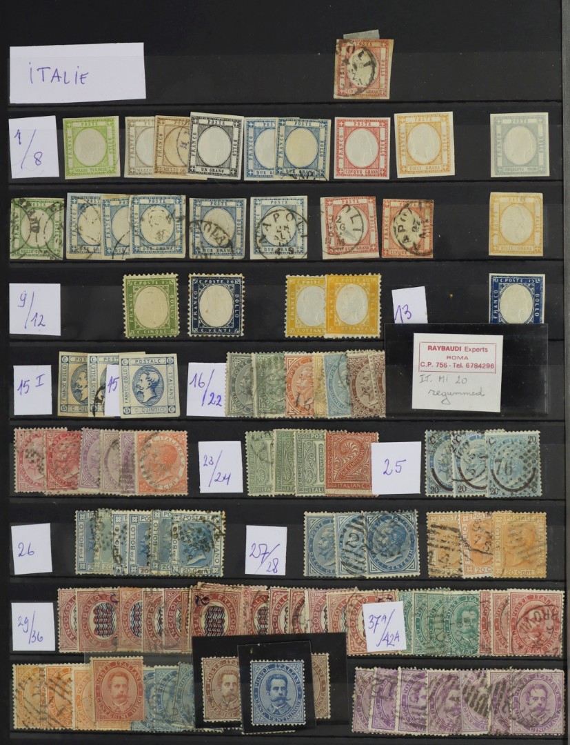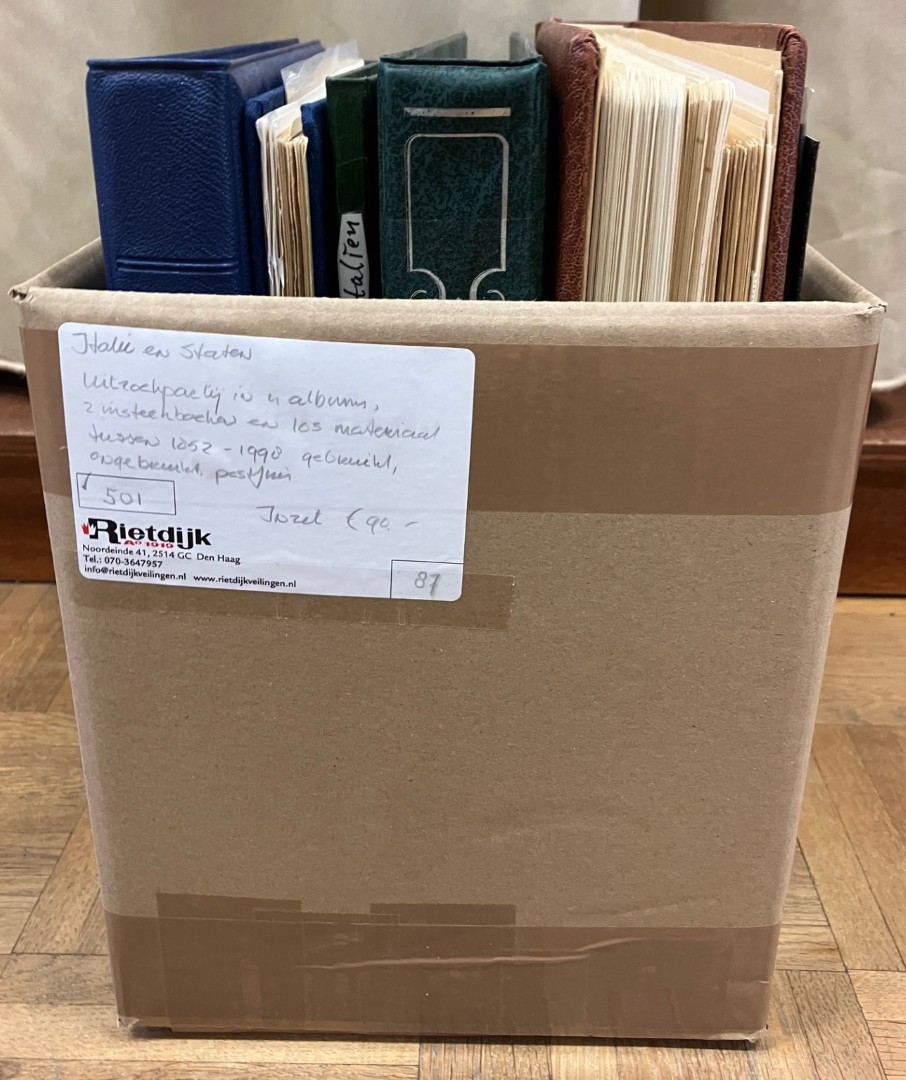 1157 imageITALIË. Doos met verz./partij vanaf Oude Staten t/m circa 1998 in 4 albums, 2 stockboeken en wat los materiaal met gebr./ongebruikt, w.bij postfris.