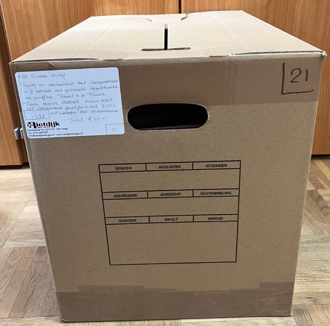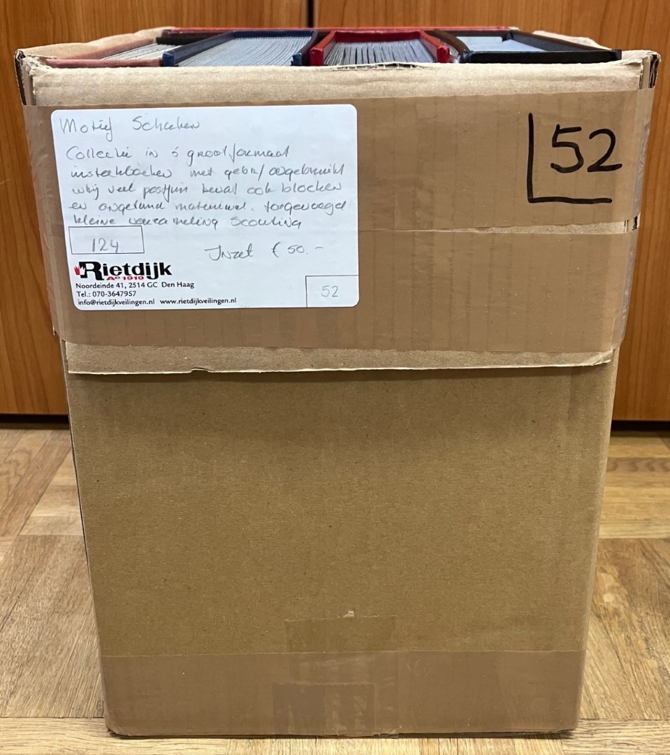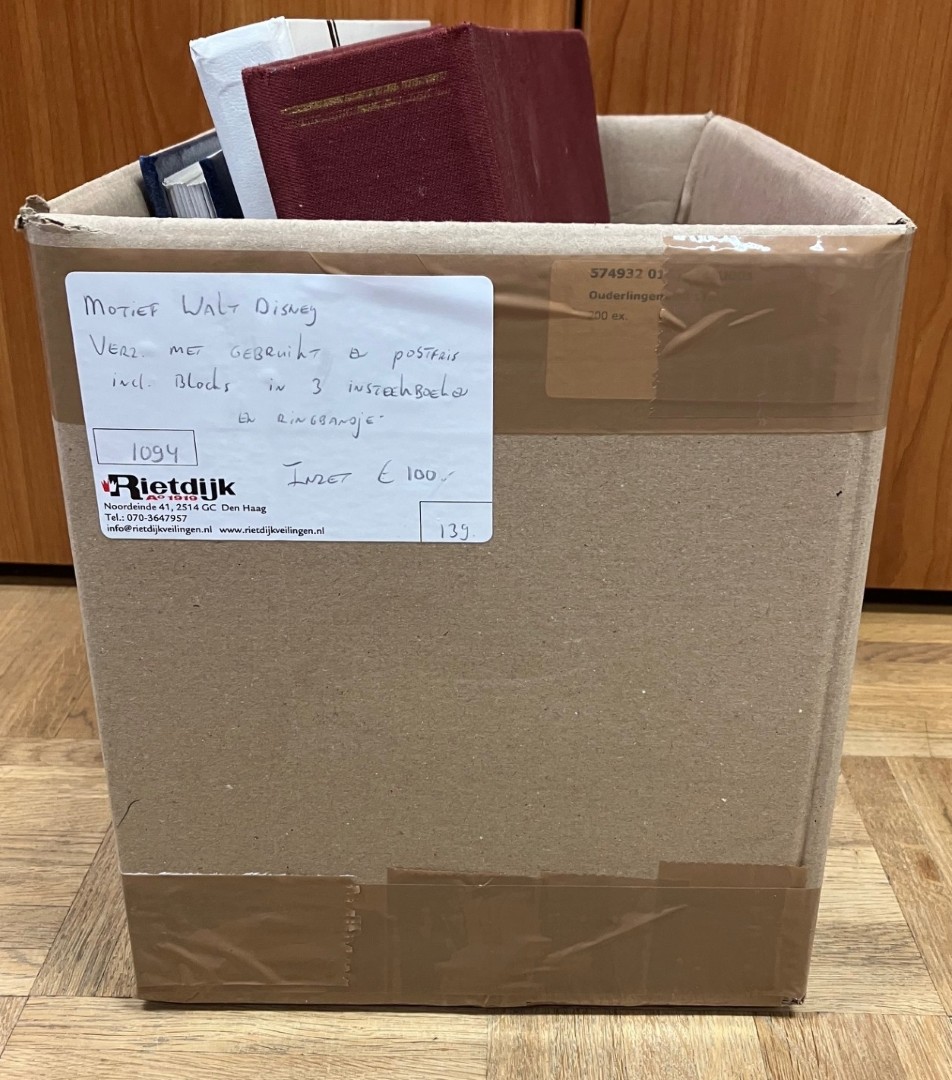 Doos met diverse onderwerpen o.a. sport, dieren, Cept, jaar v/h kind, etc. met gebruikt en postfris in 8 stockboeken. Click this link for additional images and