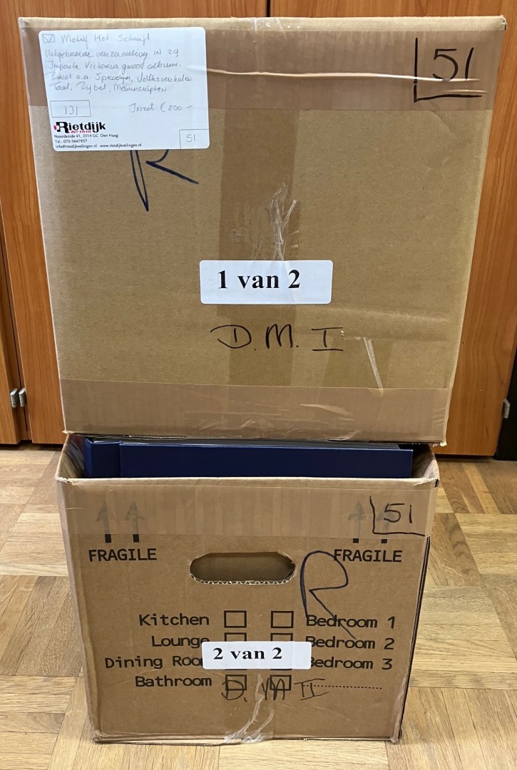 SCHRIFT". Zeer uitgebreide verz. op blanco bladen in 29 Victoria albums met gebr./ongebruikt en postfris in 2 grote dozen. Bevat o.a. taal, de Bijbel, manuscripten, volksverhalen, sprookjes, etc. (Image)