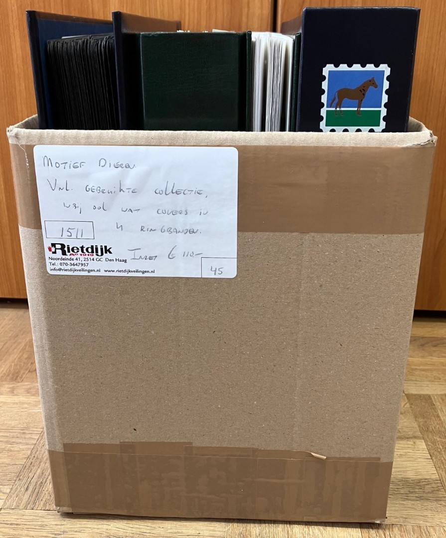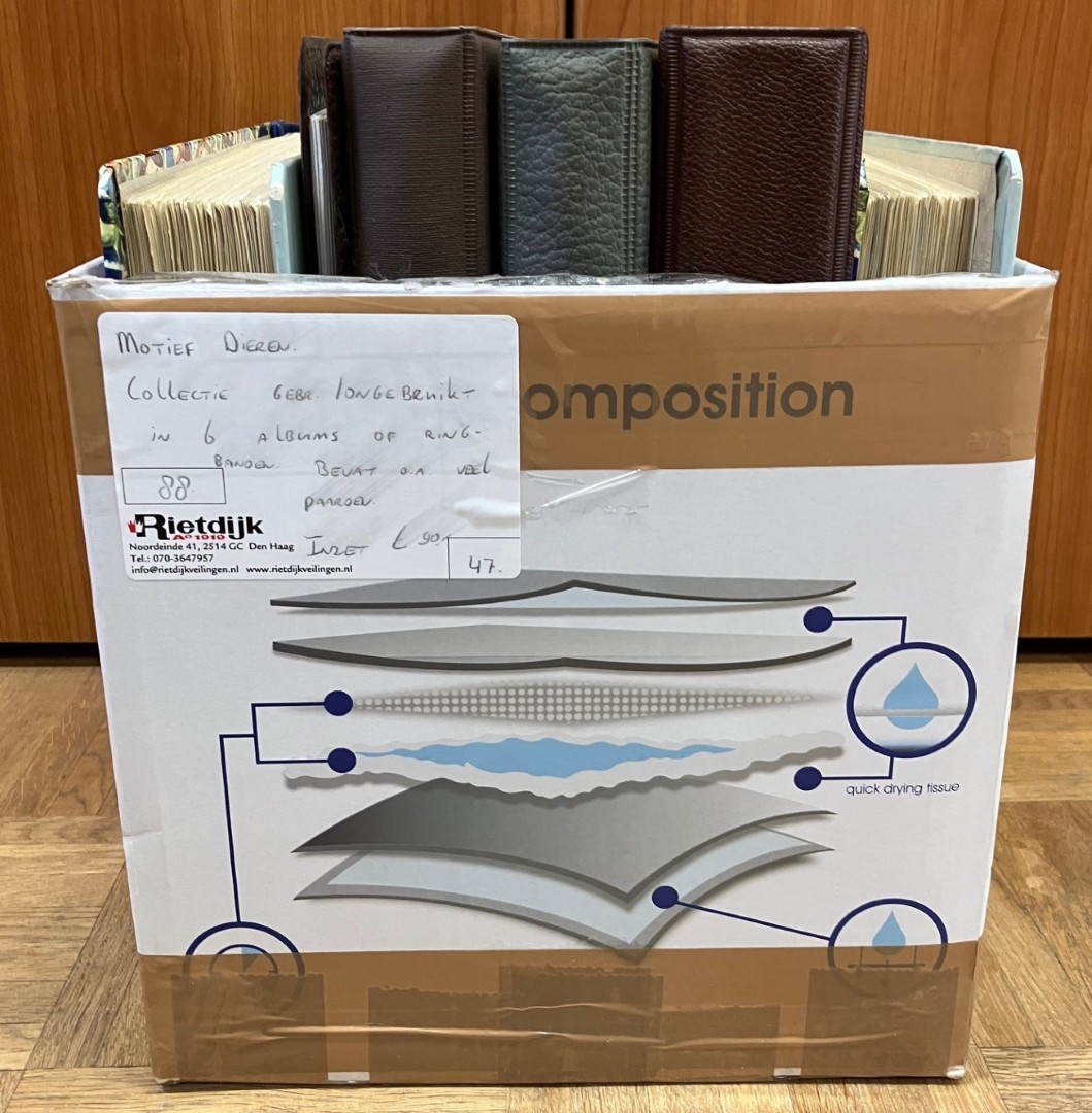 Collectie gebr./ongebruikt in 6 albums of ringbanden in doos. Bevat o.a. veel paarden. Click this link for additional images and certificates. (Image)