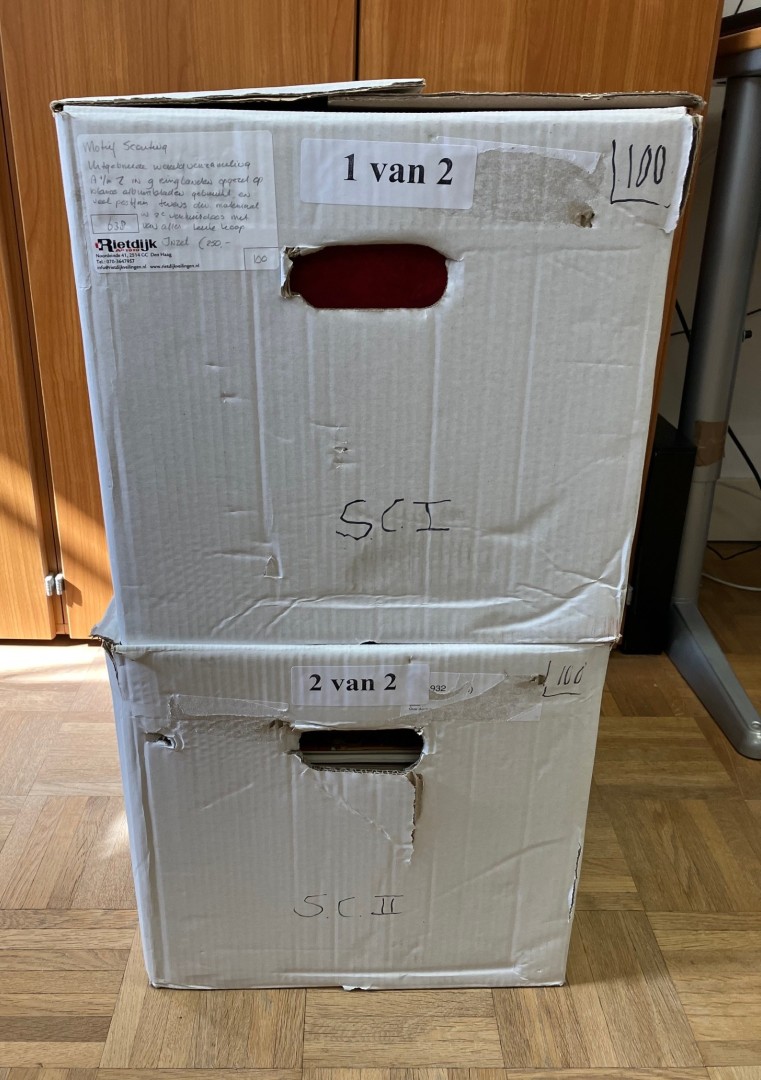 SCOUTING. Uitgebreide collectie met gebruikt en veel postfris alsmede covers opgezet per land op blanco bladen in 9 ordners en stockboek in verhuisdoos. Tevens verhuisdoos diverse scouting materiaal (niet aan postzegels gerelateerd). Leuke koop! (Image)