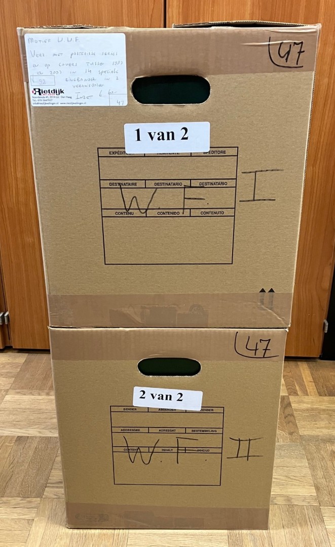 Verz. met postfrisse series en op covers tussen 1983 en 2003 in 14 speciale ringbanden in 2 verhuisdozen. Click this link for additional images and