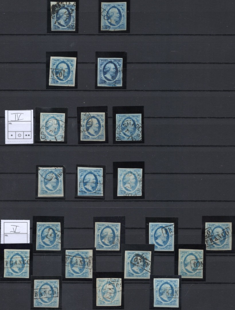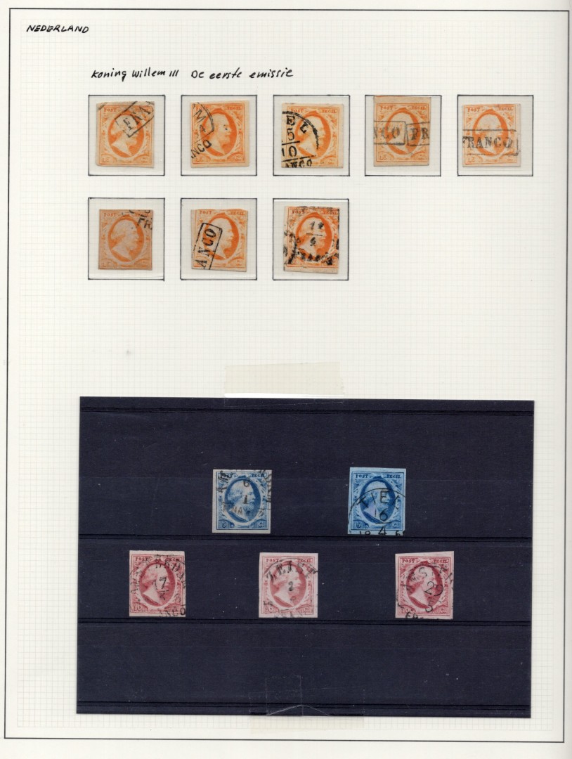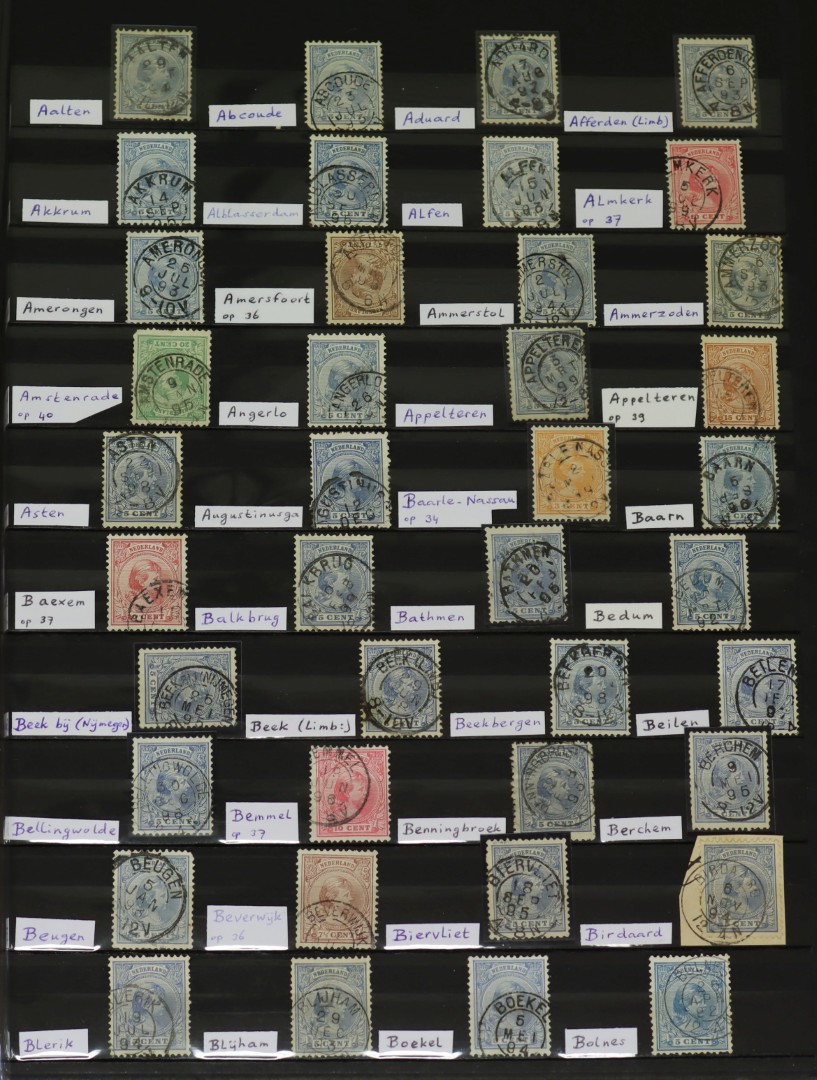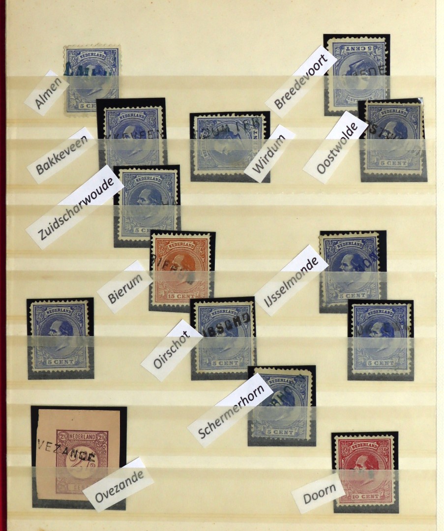 Stempels. Collectie met vele diverse stempels op uitsluitend 3e emissie opgezet op blanco bladen. Mooie koop, w.bij schaars materiaal! Click this link for additional