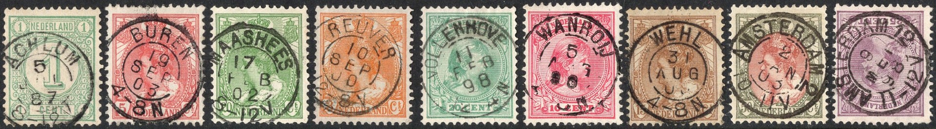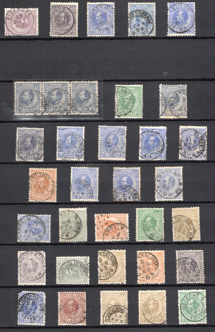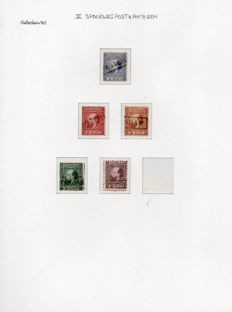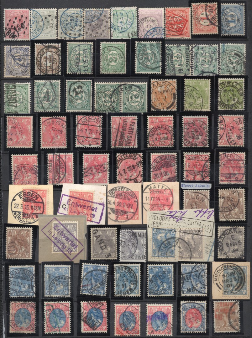 Stempels. Collectie met vele diverse stempels op uitsluitend 3e emissie opgezet op blanco bladen. Mooie koop, w.bij schaars materiaal! Click this link for additional