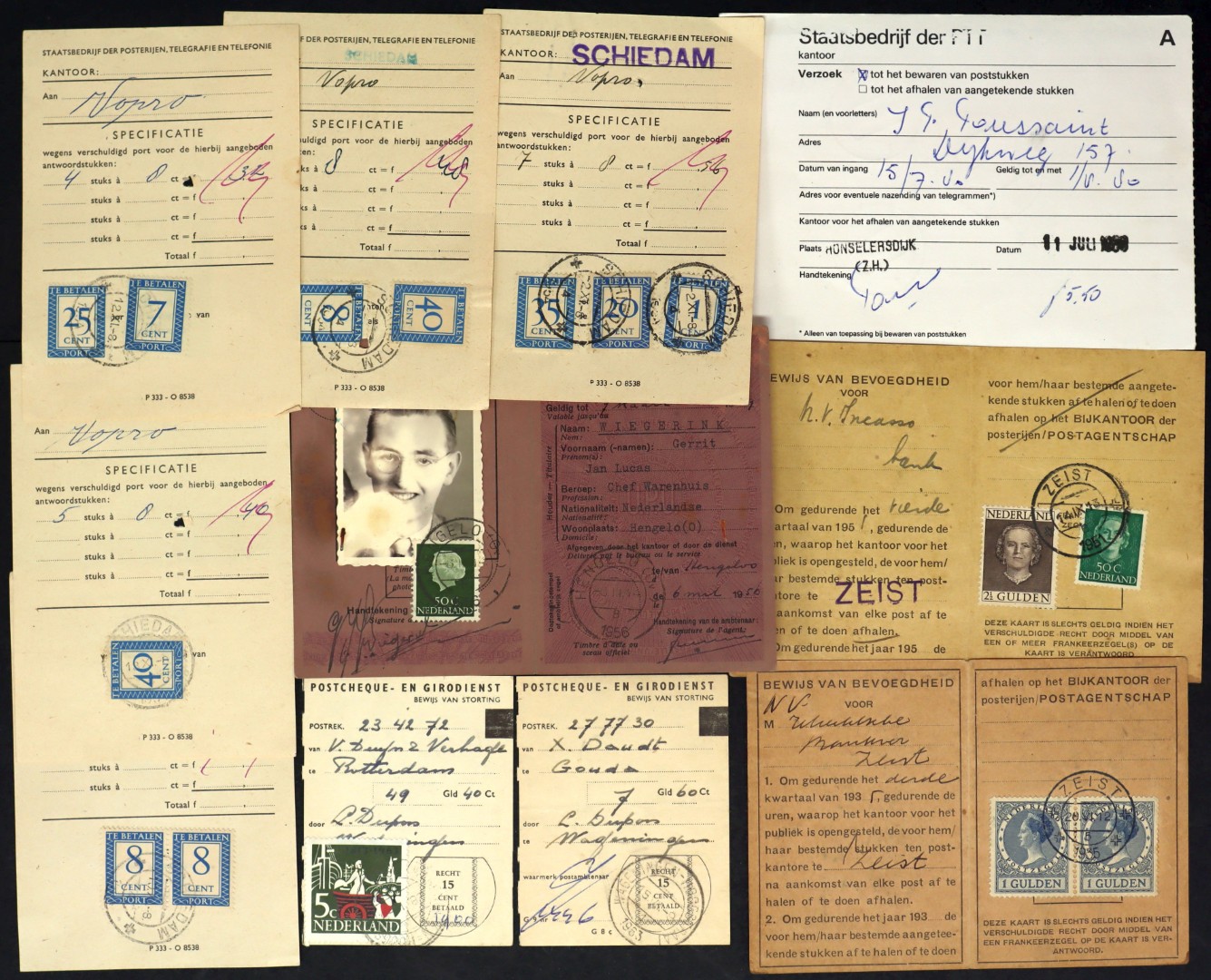 Map met 2 hele en ± 22 halve postbuskaartjes vanaf 1935 alsmede postindentiteitskaart 1956. Click this link for additional images and certificates. (Image)