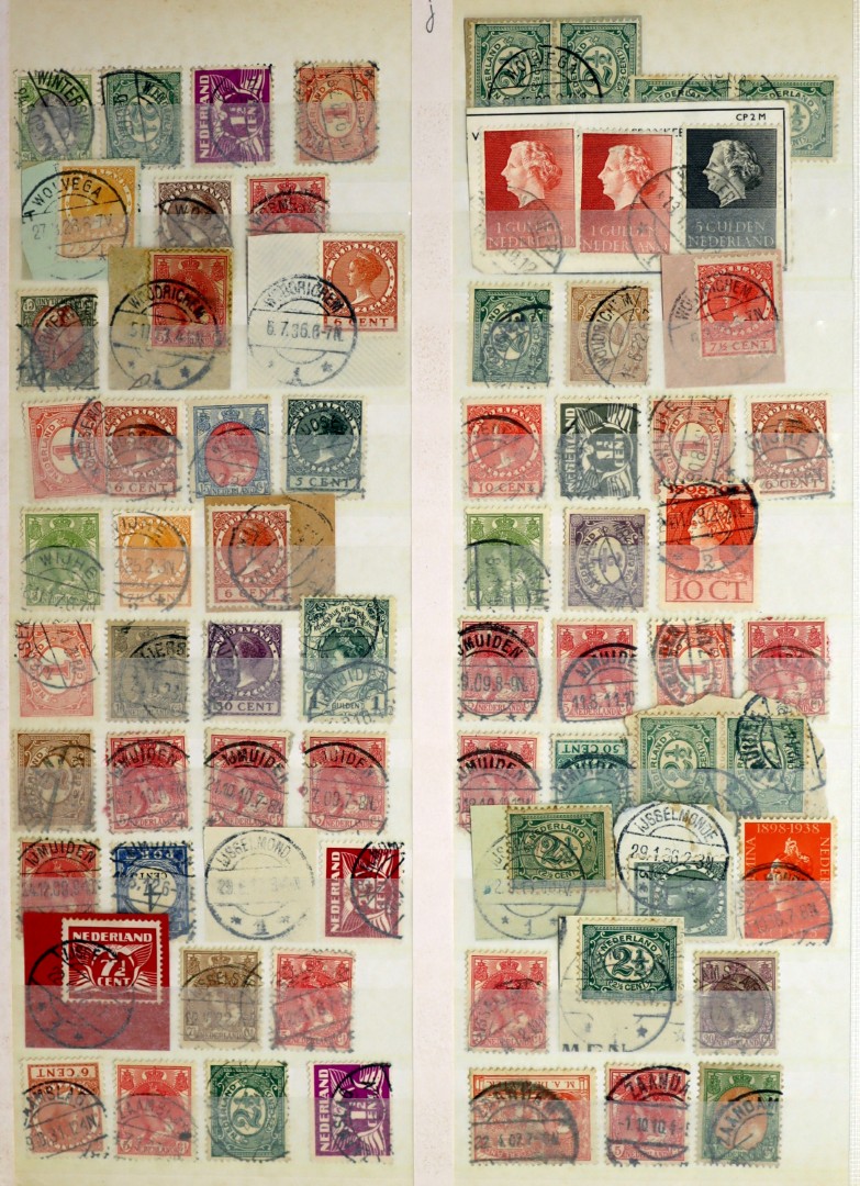 Stempels. Verz. met vele diverse stempels en opgezet op zegelnummer tussen 1852 en 1939 in zeer dik insteekboek. Click this link for additional images and