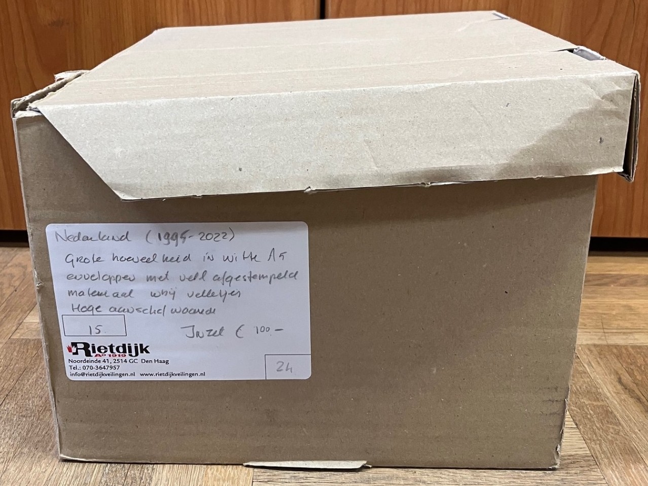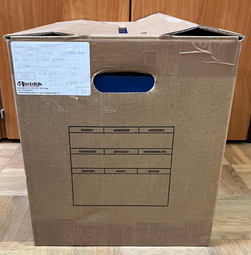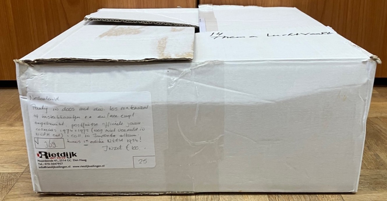 Doos met partijtje post(waarde)stukken vanaf ± 1945. Click this link for additional images and certificates. (Image)