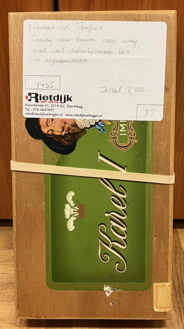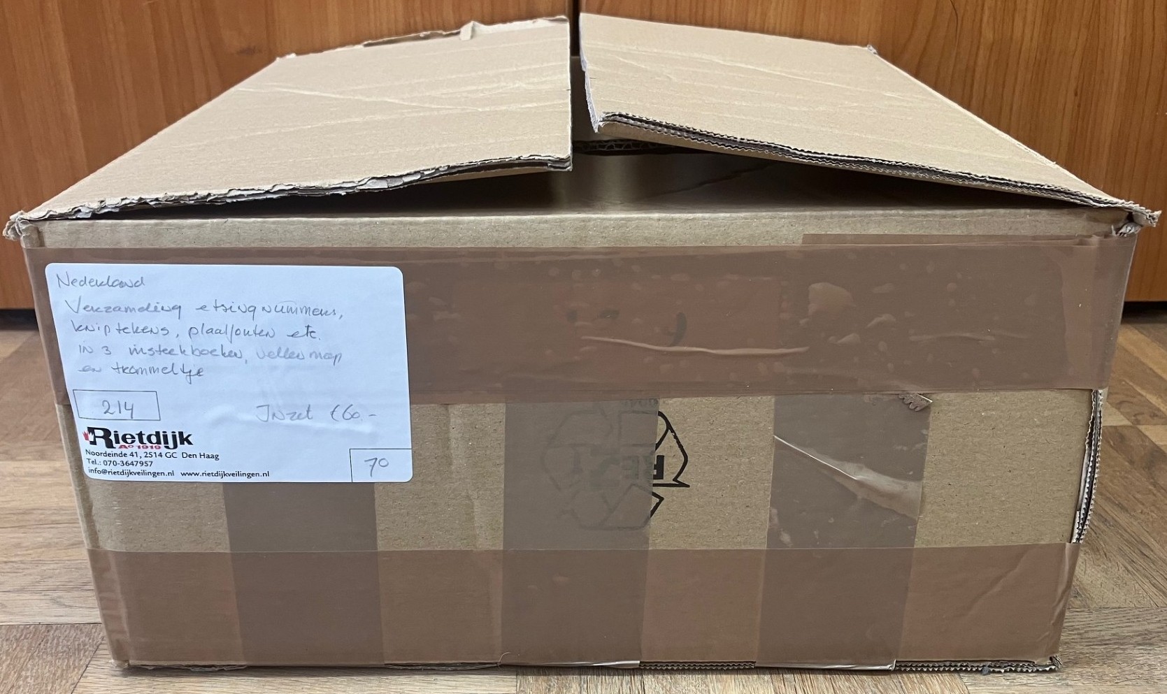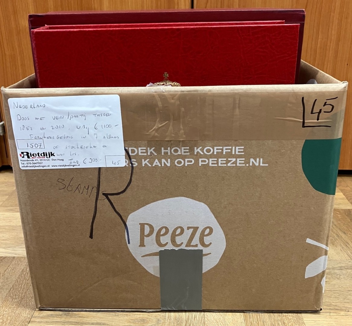 Doos met partijtje post(waarde)stukken vanaf ± 1945. Click this link for additional images and certificates. (Image)