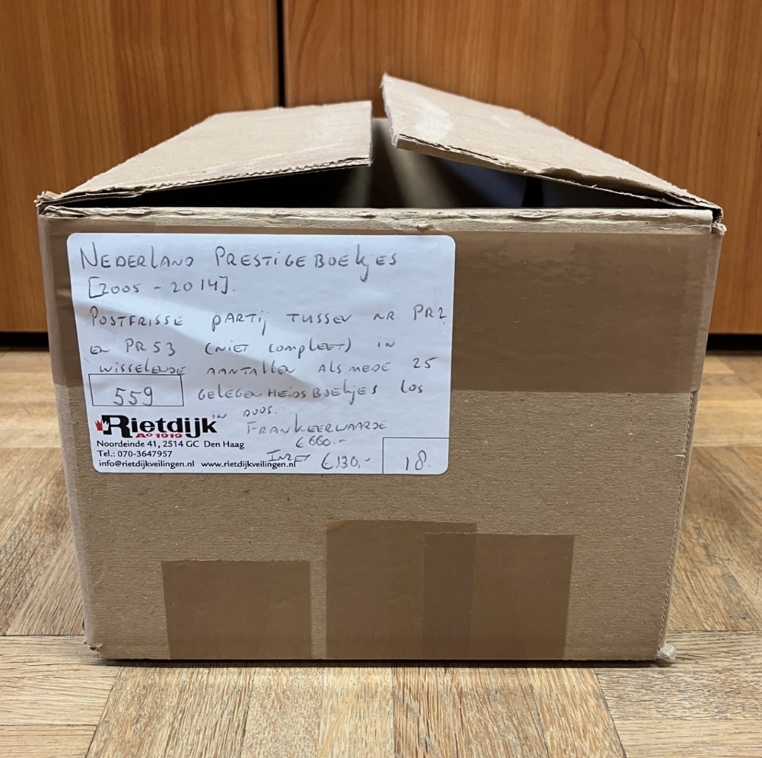 PRESTIGEBOEKJES [2005-2014]. Postfrisse partij tussen nr. PR2 en PR53 niet compleet en in wisselende aantallen alsmede 25 gelegenheidsboekjes los in doos. Frankeerwaarde € 660,-. Click this link for additional images and certificates. (Image)
